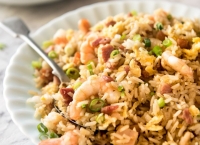 Se poate prepara pentru mai multi: cu o zi inaite, se fierbe dublul cantitatii de orez.In ziua urmatoare se prajeste in wok impreuna cu restul ingredientelor si se pune apoi direct pe masa.