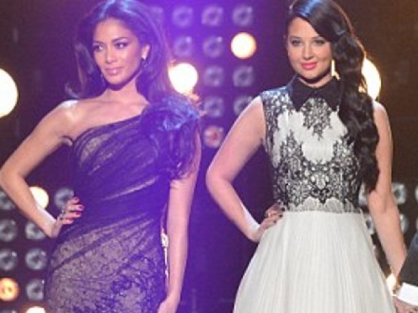 Intruchiparea elegantei, Nicole Scherzinger a pasit pe scena intr-o rochie neagra, lunga, din organza.