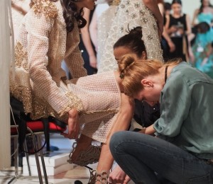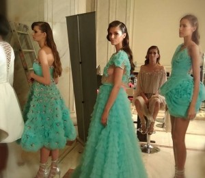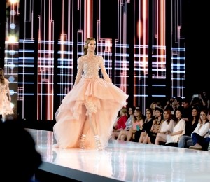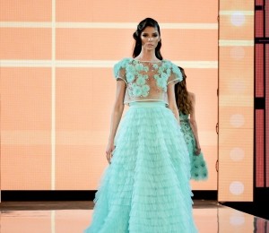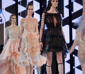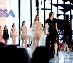 Petale fine din tull şi mătase, din metal fragil sau dantele delicate învăluie ţesături preţioase creând volume şi texturi surprinzătoare. Mărgelele şi cristalele sunt înşiruite prin ploi de franjuri şi se îmbină armonios cu croielile feminine ale tuturor pieselor. Delicateţea colecţiei se regăseşte şi în cromatica diafană de alb, nude, pasteluri pudrate şi negrul strălucitor!