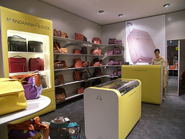 Creat in 1977 in Italia, de catre Paolo Trento si Pietro Mannato, Mandarina Duck a schimbat radical regulile pe piata accesoriilor. Colectia presupune modele si culori indraznete, "rata Mandarina" fiind simbolul brandului, expresia pura a puterii culorii. Penajul multicolor, curiozitatea si insptinctul de calatorie al acestei pasari definesc valorile brandului. Mandarina Duck inseamna peste 1000 de magazine pe trei continente si o prezenta in cele mai prestigioase Department Stores: Galeriile La Fayette, Primptems, Cortes Ingles sau KA.DE.WE. Romania va avea primul magazin Mandarina Duck din luna aprilie in centru comercial baneasa Mall si va avea o suprafata de 80 mp.