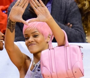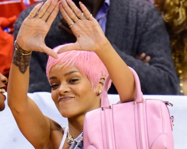 RiRi nu inceteaza sa ne surprinda, de aaceasta data accesorizandu-ti tinuta cu o geanta roz, exact aceeasi nuanta ca si parul.