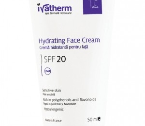 Crema hidratanta pentru fata cu SPF 20 Ivatherm protejeaza si hidrateaza pielea sensibila. Este recomandata ingrijirii zilnice a persoanelor de toate varstele expuse actiunii nocive a razelor solare, pe tot parcursul anului. Ingredientele sale (Tealine – un complex de ceai alb, verde si rosu cu rol de protectie si actiune antiradicali liberi; Untul de Karite – antiinflamator, hidratant, calmat , bogat in vitamine si fitosteroli; Uleiul de masline – puternic nutritiv, bogat in acizi grasi esentiali, vitamine si antioxidanti; apa termala Herculane, calmanta si antiiritanta) actioneaza impotriva efectului de foto-imbatranire la nivelul pielii.