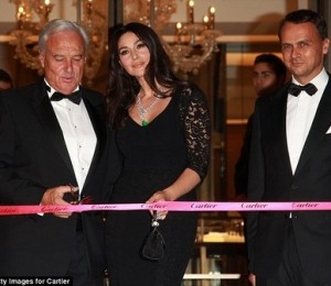 Monica Belluci a purtat o eleganta rochie neagra din dantela, care se mula perfect pe formele ei seducatoare. La gat purta un colier superb cu diamante si un urias smarald.