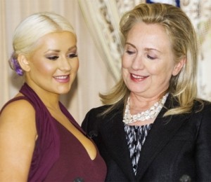 Moment penibil - Hillary Clinton nu si-a putut lua ochii de la sanii Christinei Aguilera!
