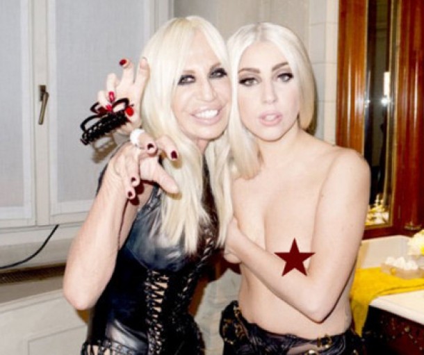 Din imagine se poate observa clar ca Donatella Versace si Lady Gaga sunt prietene bune, din moment ce artista si-a permis sa apara goala intr-o fotografie alaturi de cunoscutul designer.
