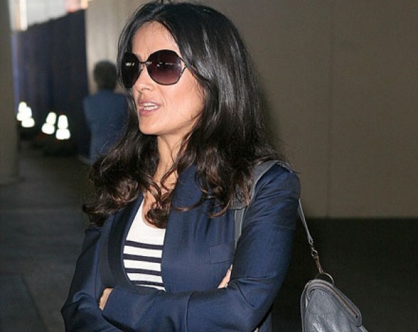 Surprinsa pe aeroprtul din Los Angeles, Salma Hayek arata de parca ar fi coborat de pe podiumul de prezentare si nu ai fi putut crede ca a avut parte de un zbor de 15 ore.