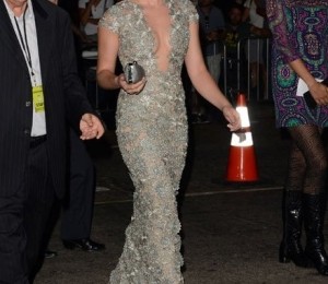 Actrita si-a completat cu succes tinuta de gala cu un clutch argintiu, in ton cu rochia si o pereche de cercei discreti.