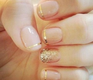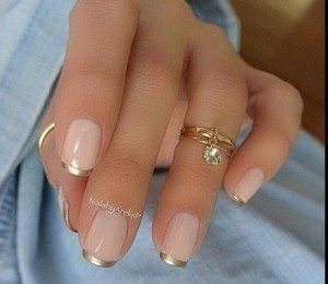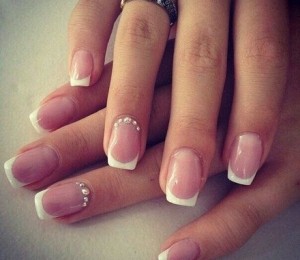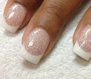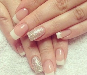 Poti incerca o manichiura french cu sclipici ori cu alte culori decat clasicul alb aplicat alaturi de lacul de unghii incolor ori oja bej.