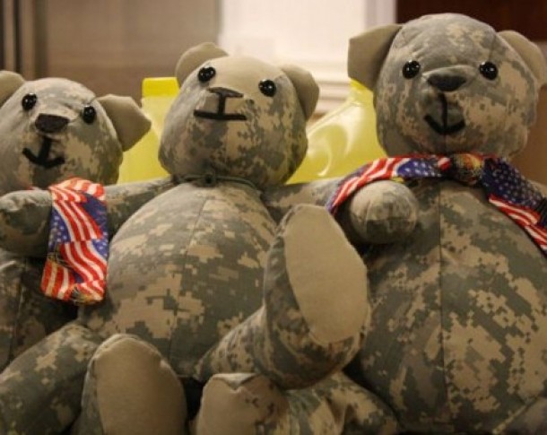 Printre multele activitati pe care femeia le face in cadrul acestei fundatii se numara si crearea de ursuleti de plus, realizati din uniformele soldatilor americani care au murit la datorie.