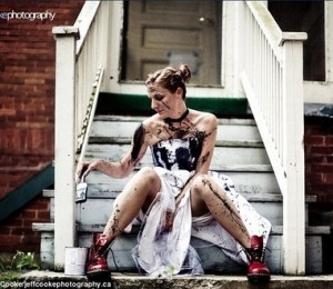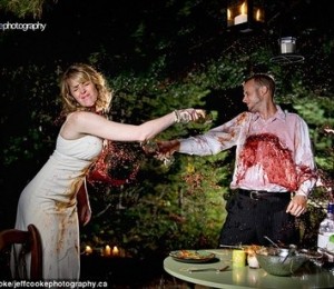 Scopul este de a crea o imagine puternica, in contrast cu frumusetea si puritatea rochiei de mireasa.