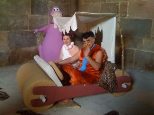 Cei doi isi continua deghizarile de data aceasta in epoca de piatra, asemenea Wilmei si lui Fred Flinstone.