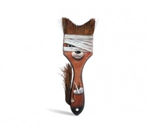 Legrand se foloseste de imaginatia sa pentru a picta mici detalii pe obiectele pe care noi le folosim zi de zi. O pensula poate deveni o vulpita daca ii adaugi niste brate si picioare, iar o balama poate deveni un agent de vanzari.