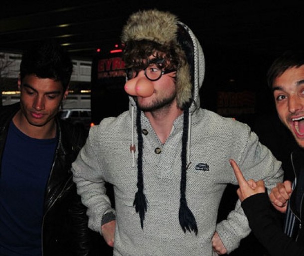 Cantaretul in varsta de 22 de ani si-a dorit ca toata atentia sa fie indreptata asupra lui de indata ce va cobora din avion si a reusit fara indoiala. Si-a intampinat fanii veniti sa ii salute cu o pereche de ochelari care aveau o pereche de sani in zona nasului.