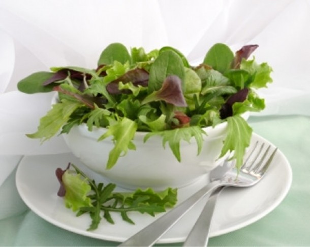 Ingrediente: 3 linguri de otet din sampanie sau otet de vin alb; 1/2 lingurita mustar de Dijon; 1/2 lingurita usturoi proaspat tocat; sare; piper negru proaspat macinat; 1/2 cana ulei de masline de buna calitate; 6 cani de salata verde sau amestec (spanac, rucola, laptuci, mangold sau sfecla elvetiana, etc.)