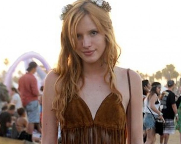 Bella Thorne a ales o tinuta hippie, purtand un maiou cu franjuri si o pereche de pantaloni scurti dintr-un material vaporos.