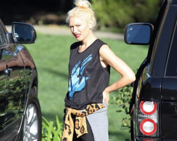 Astfel, Gwen Stefani a fost surprinsa de paparazzi intr-una din zilele nefavorabile si arata de parca tocmai s-ar fi trezit. Avea parul prins intr-un coc ravasit si purta o tinuta ce ne lasa sa credem ca s-a imbracat pe intuneric. Purta o pereche de pantaloni negri, un top de aceeasi culoare cu un imprimeu albastru si o bluza de trening gri cu maneci cu model animal print legata in talie. Chiar daca machiajul ei de regula impecabil nu se ridica de data aceasta la nivelul asteptarilor, rujul rosu nu putea lipsi.