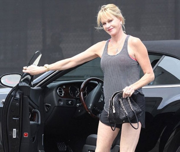 Melanie Griffith a adoptat pentru iesirea in oras un outfit foarte indraznet, pentru care nu multe femei de varsta ei ar avea curajul sa opteze. Actrita purta o pereche de pantaloni scurti de culoare neagra si un maieu in dungi. Desi se mentine intr-o forma fizica impecabila, dimensiunea redusa a pantalonilor a lasat la vedere efectele inevitabile ale trecerii timpului. Picioarele actritei nu mai sunt la fel de tonifiate si pielea si-a pierdut elasticitatea.