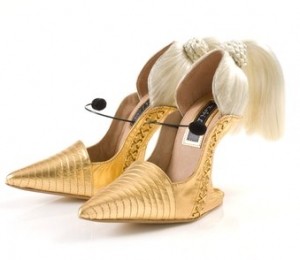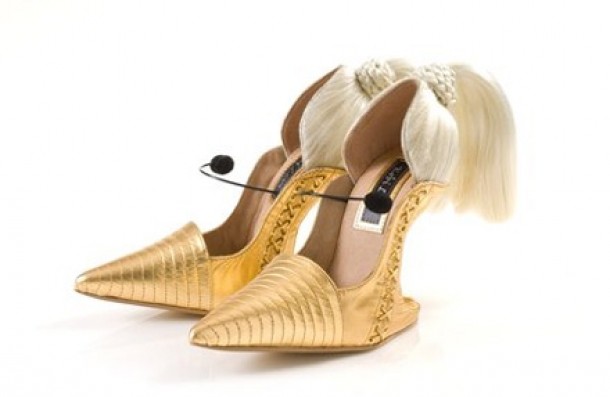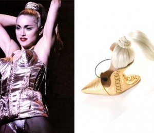 Madonna in anii ’90, cu parul lung, blond si drept, prins in coada si purtand casti cu microfon, facand cele mai scandaloase show-uri, a reprezentat imaginea iconica pentru noul model de pantofi sub semnatura lui Kobi Levi. Aurii, o coada blonda in partea de calcai si cu un microfon pe post de bareta, pantofii au fost prezentati ca un tribut pentru “ambitioasa blonda”, “Material Girl”, intr-un cuvant – Madonna.