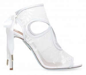 Un model mai îndrăzneţ pentru miresele fashioniste. Designerul Spohia Webster s-a gândit cu siguranţă la tradiţionala "ceva vechi, ceva nou, ceva cu împrumut, ceva albastru..." când a creat aceşti pantofi de nuntă. Ne place mult tocul sclipitor iar tălpile sunt un deliciu: pe o talpă scrie "wifey", pe cealaltă "for lifey" ("soţie pe viaţă").