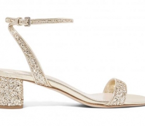 Aurii şi strălucitori, cu barete subţiri şi un toc mic şi gros, sandalele Miu Miu sunt graţioase dar nu ţipă pantofi de mireasă de la o poştă, aşa că le vei purta cu siguranţă şi la alte ocazii.