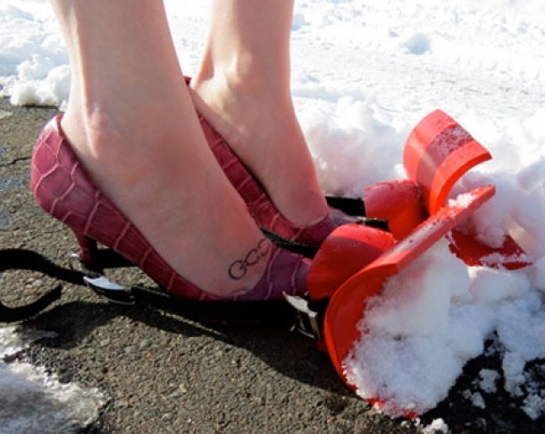 Este vorba de un mini sistem de deszapezire realizat din teava PVC care se ataseaza pantofilor.