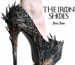 Nixxi Rose a creat o pereche de pantofi cu tocuri inalte inspirati din "Game of Thrones". La fel ca iconicul Tron de Fier din show-ul TV, acesti pantofi arata de parca ar fi fost fauriti din mai multe sabii.