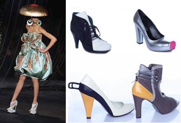 - sandalele cu varful ascutit, foarte scurt, cu platforma, cu tocul curbat (sandalele Dior ar fi un bun exemplu).