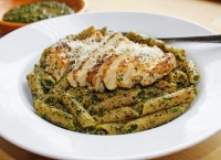 1 pachet de pene, 1 lingură de ulei vegetal. 1 ceapă tocată mărunt, 3 căţei de usturoi mărunţiţi, 1 dovlecel de dimensiuni reduse, tăiat felii, 1 lămâie stoarsă, 1 ardei gras tăiat felii, 1 conservă de ciuperci, 1 conservă de roşii decojite, 1 lingură de oregano, 1 linguriţă de busuioc, 1/2 fulgi de chilli, 1/4 linguriţă de sare, 1/4 linguriţă de piper negru, 1 kilogram de creveţi