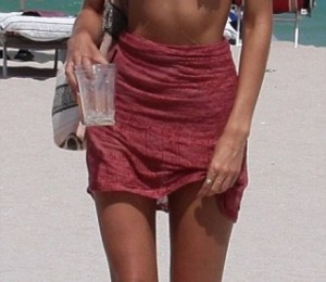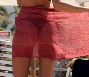 Alaturi de iubitul ei, Candice s-a plimbat pe plaja, acoperindu-si posteriorul cu o esarfa, dar care nu a facut mai mult decat sa atraga atentia. Apoi, fericitul cuplu a fost vazut bucurandu-se de apa si de data aceasta frumoasa blonda a renuntat la esarfa, lasand blitul fotografilor sa ii suprinda cat mai bine bine corpul.