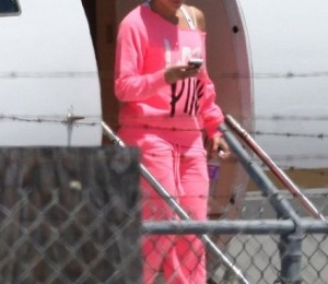 Intorcandu-se din Las Vegas, Jennifer Lopez si iubitul ei, Casper Smart, au fost surprinsi pe aeroport. Artista a coborat din avionul personal imbracata, cum altfel, intr-un trening roz. Cu parul prins intr-un coc neglijent si o pereche de ochelari de soare pentru a-si ascunde chipul nemachiat, Jennifer are un look sters.