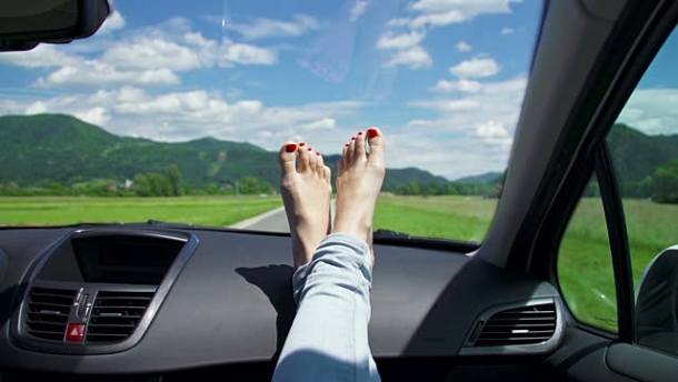 O femeie de peste Ocean a aflat pe pielea ei cât de riscant este să îţi ţii picioarele întinse pe bordul maşinii în timp ce aceasta se află în mişcare.
