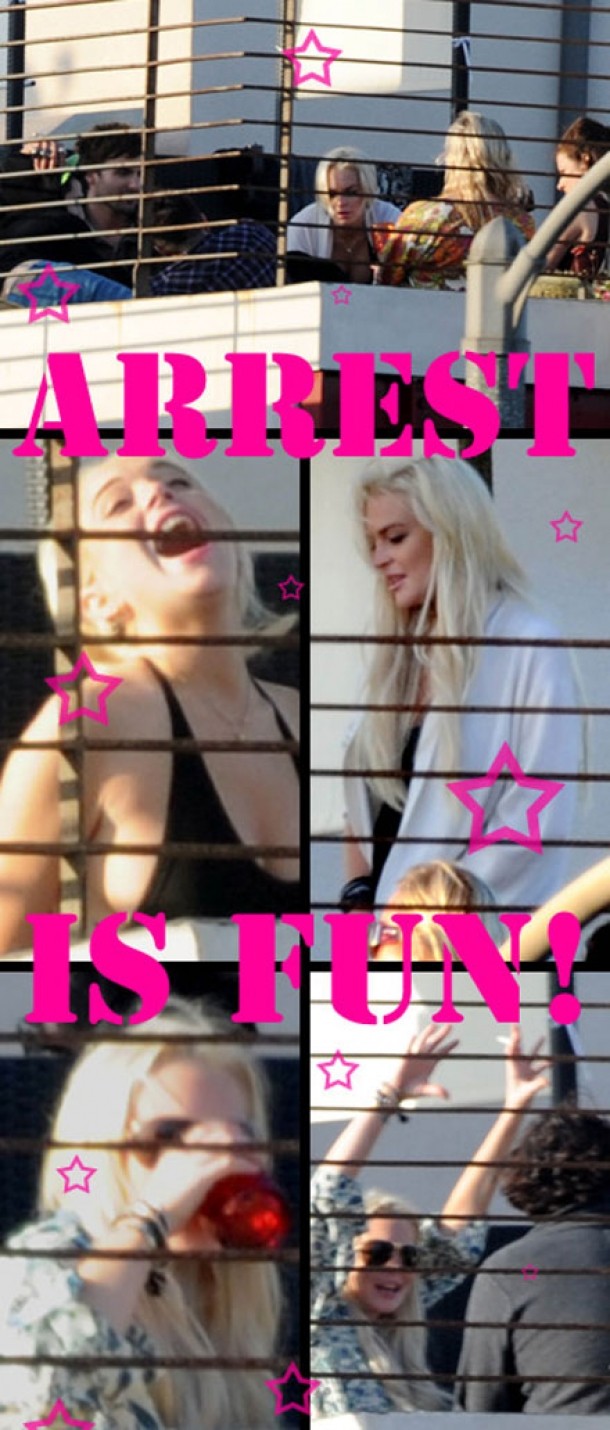 Nu are voie sa iasa din casa sa se petreaca prin cluburi, nicio problema, vine clubul la ea. Ei nu chiar de club, dar ceva asemanator. Lindsay si-a invitat niste prieteni duminica, cu care sa se distreze la locuinta ei din Venice, California. Aceasta parea ca se simtea de minune impreuna cu amicii ei, a ras, a baut si a fumat, potrivit U.K. Daily Mail. Desi nu are voie sa paraseasca incinta proprietatii, ei ii este permis sa invite persoane in vizita.