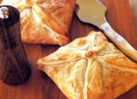 2. Se folosește un cuțit bine ascuțit pentru a cresta bucățile de piept de pui și a le deschide, fără a separa jumătățile, apoi se întinde în interiorul acestora câte o lingură de sos pesto, peste care se pune parmezan ras, acoperit de 3 frunze de busuioc, apoi se închide crestătura pe lung, cu bețe de cocktail sau frigărui.
