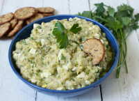 Pieptul de pui, curatat de piele se taie fasii, se stropesc cu ulei de masline, se condimenteaza cu cimbru, paprika, chili, sare, piper. Se lasa 20 de minute la rece. Separat, se curata vanata, se taie cubulete, se stropesc cu zeama de lamaie si se condimenteaza cu cateva feliute de ardei iute. Se prajesc bucatile de carne cu 2 linguri de ulei, se adauga cubuletele de vinete si se calesc impreuna 10 minute. Se condimenteaza cu sare si piper, dupa gust, se condimenteaza cu verdeata tocata si cateva feliute de ardei iute si usturoi. Se serveste carnea garnisita cu vinete si asezonate cu sosul picant.