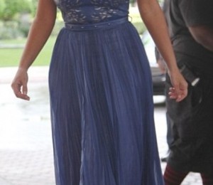 Kim Kardashian a purtat o rochie similara, intr-o nuanta de albastru, pentru reality show-ul realizat impreuna cu familia.