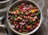5. Se stropește fiecare grămadă cu câte o lingură din oțetul balsamic și se servește preparatul imediat.
