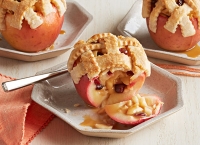 3. Se întinde într-o tavă mare una dintre foile de aluat, peste care se pun merele rase și se acoperă totul cu cealaltă foaie.