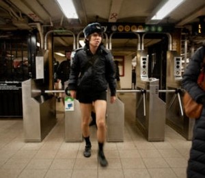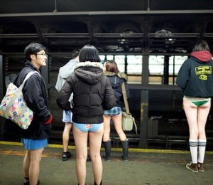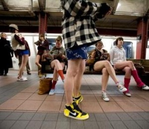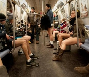 'No Pants Subway Ride', "Plimbare cu metroul fara pantaloni', a fost organizata pentru prima oara in urma cu noua ani la New York de grupul 'Improv Everywhere'. Atunci la aceasta miscare inedita au participat doar sapte persoane, insa in fiecare an, numarul celor care spun da acestei provocari creste.