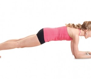 1. Poziţia plank, în timp ce stai sprijinită pe antebraţe