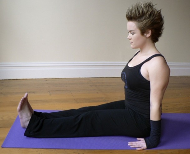 Din pozitia sezand intinde picioarele in fata, lipite de sol. Sprijina-te in maini, cu palmele fixate simetric de o parte si de alta a corpului, pe aceeasi linie cu soldurile. Tine spatele drept si incordeaza muschii abdomenului. Mainile sunt perfect intinse, capul este ridicat, privirea orientata inainte. Pastreaza pozitia cat mai mult timp posibil. Intr-o alta varianta a acestei pozitii poti fixa mainile putin mai departe de corp ajutandu-te de ele ca puncte de sprijin pentru a te inclina putin mai mult pe spate.