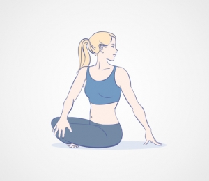 Adu-ţi mâna dreaptă în faţă şi pune-o pe genunchiul stâng, răsucindu-ţi astfel trunchiul, astfel încât mâna stângă să se odihnească în spatele tău. Menţine această poziţie cât timp respiri de 5 ori, stând cu coloana dreaptă în această poziţie. Răsuceşte-te către centru, încrucişează picioarele astfel încât piciorul opus să stea în faţă şi repetă întreaga procedură pentru cealaltă parte a corpului.