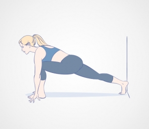 Stai în poziţie de fandare clasică, cu genunchiul stâng deasupra gleznei stângi. Călcâiul drept ar trebui să fie pus pe un perete, în spatele tău, pentru a te asigura că îţi desfaci coapsele cât mai mult. Lasă-te uşor în jos şi pune-ţi mâinile pe podea, chiar sub umeri tăi, de fiecare parte a picioarelor tale, chiar în faţa ta. Seamănă un pic cu poziţia de start pe care o au atleţii înaintea unei curse.