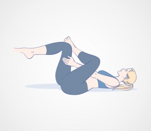 Ţine-ţi ambii genunchi la piept ca într-o îmbrăţişare şi lasă-i să cadă pe o parte, la înălţimea coapselor, ca în imagine. Ridică-ţi genunchii şi inspiră, revino la poziţia centrală, apoi răsuceşte-te către cealaltă parte a corpului şi expiră. La final, întinde-te pe spate cu picioarele întinse şi drepte în faţa ta ("poziţia cadavrului") pentru a mai respira complet de câteva ori. Sursa foto.