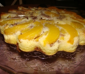 Pe fundul tăvii în care se prepară prăjitură se pot adaugă fructe feliate din compot.