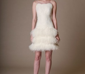 De asemenea, la mare căutare sunt şi rochiile scurte de mireasă cu imprimeuri 3D, franjuri sau pene, ca să nu mai spunem de cele cu valoane, care le avantajează pe miresele cu talia subţire şi şoldurile late.