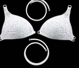 Continuum Fashion si Shapeways au lansat primul costum de baie cu imprimeu 3D. Costumul comprima mai multe elemente circulare, ale caror dimensiuni sunt create in functie de forma purtatorului.