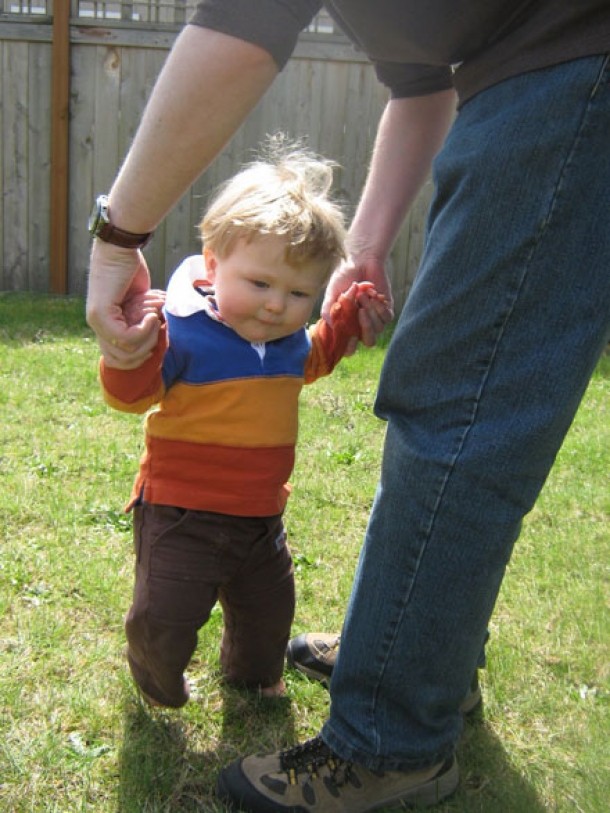 Unii specialisti sustin ca uneori nu strica totusi sa-i dai cate un deget de ajutor sau sa il lasi sa impinga o masinuta cu maner special conceputa pentru asemenea situatii, dar nu sunt cu totii de acord. Cei mai multi cred ca daca nu il ajuti deloc va invata mult mai repede sa mearga. Poti insa sa stai la distanta si sa il incurajezi tinand bratele larg deschise spunandu-i „hai la mami”.