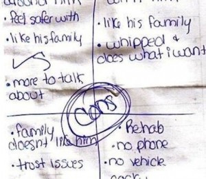 O adolescenta a fost atat de distrata si de zapacita in ceea ce priveste alegerea pe care urma sa o faca (intre Matt sau Chase), incat a facut o lista cu argumente pro si contra pentru fiecare potential iubit. Dupa ce a lasat lista in urma, uitand-o intr-un avion, un insotitor de bord a "ajutat-o" si a facut ca lista ridicola sa devina virala si sa ajunga pe internet.