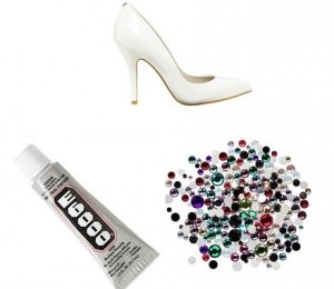 Ai nevoie de: o pereche de stiletto albi, strasuri colorate si lipici.