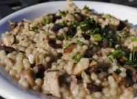 8. Înainte de servire se ornează porțiile cu parmezan și crenguțe cimbru.